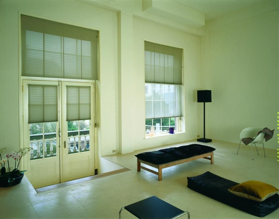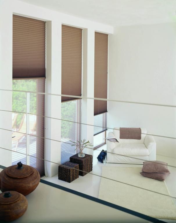 Un producto que será la solución real y definitiva. Dos tejidos combinados en un sólo producto, por lo que puede combinar una tela opaca con una tela transparente. Para evitar cordeles, puede elegir esta Persiana plisada Twin con manivela.